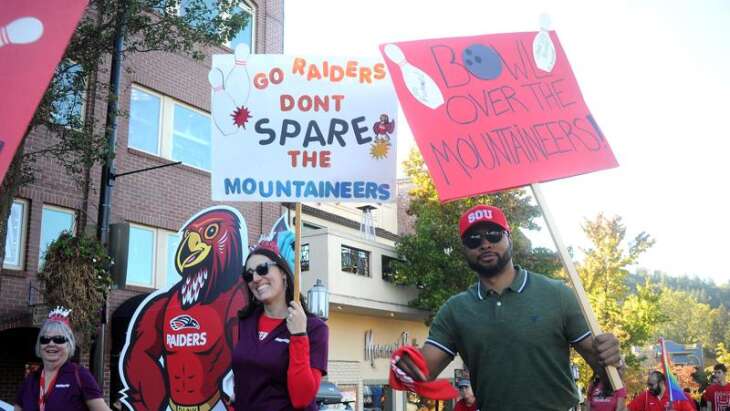 The Southern Oregon University Homecoming Parade made its way from Lithia Park to the campus Thursday. The President's 5K run and walk begins at 2:30 p. m. toda...