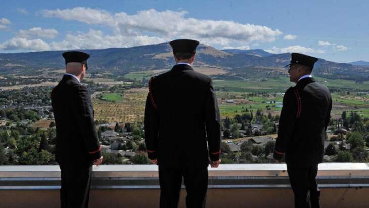 Jamie Lusch / Mail TribuneMore than 100 firefighters from over a dozen different agencies gathered on the roof of the Rogue Valley Manor in honor of the anniver...