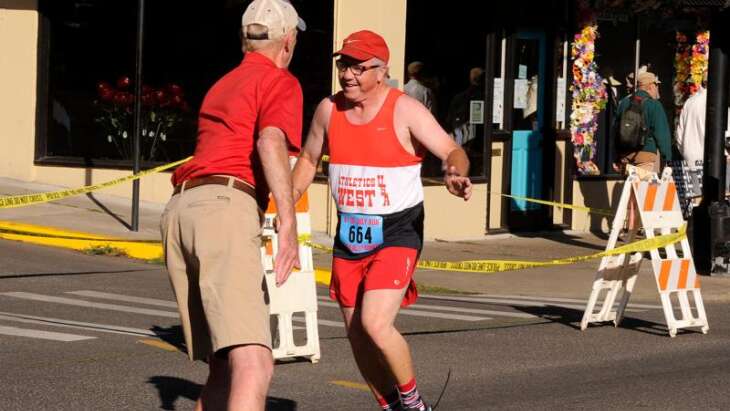 Students from Jefferson Elementary School participate in the virtual Pear Blossom Mayor’s Cup 1-Mile Run at Fichtner Mainwaring Park in Medford Friday morning.