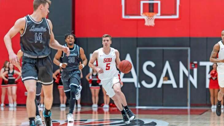 ASHLAND — Southern Oregon turned its four-point halftime edge against Multnomah into a 42-point lead and eventually a 93-62 win, its first of the Cascade Confer...